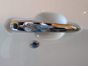 やはり、純正のドアハンドルからメッキのハンドルに交換すると、より全体的に高級感もまし、いい感じですね!!